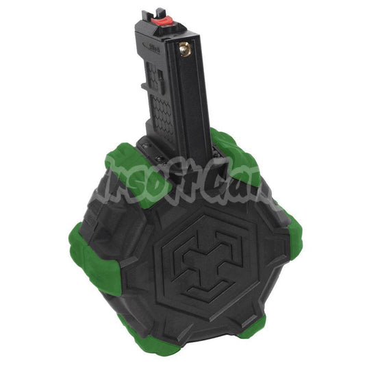 Airsoft WE 350rd Gas Drum Magazine for ISSC M22 / EMG SAI BLU / E&C / APS / ARMY / BELL / UMAREX / Elite force / VFC / AW / WE / Tokyo Marui G17 G18C G-Series GBB Pistol Black/Green