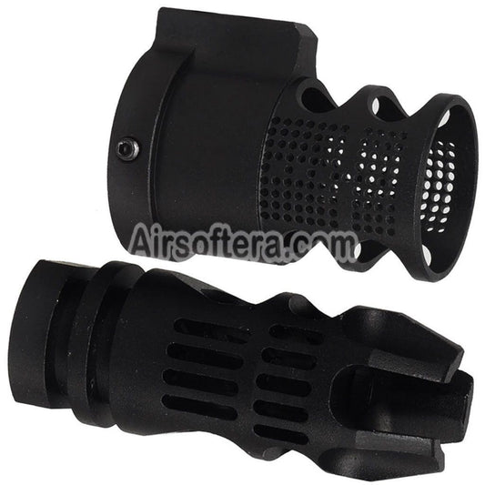 Airsoft 5KU CNC Aluminium LAF-28 Style Muzzle Brake Flash Hider -14mm CCW Black