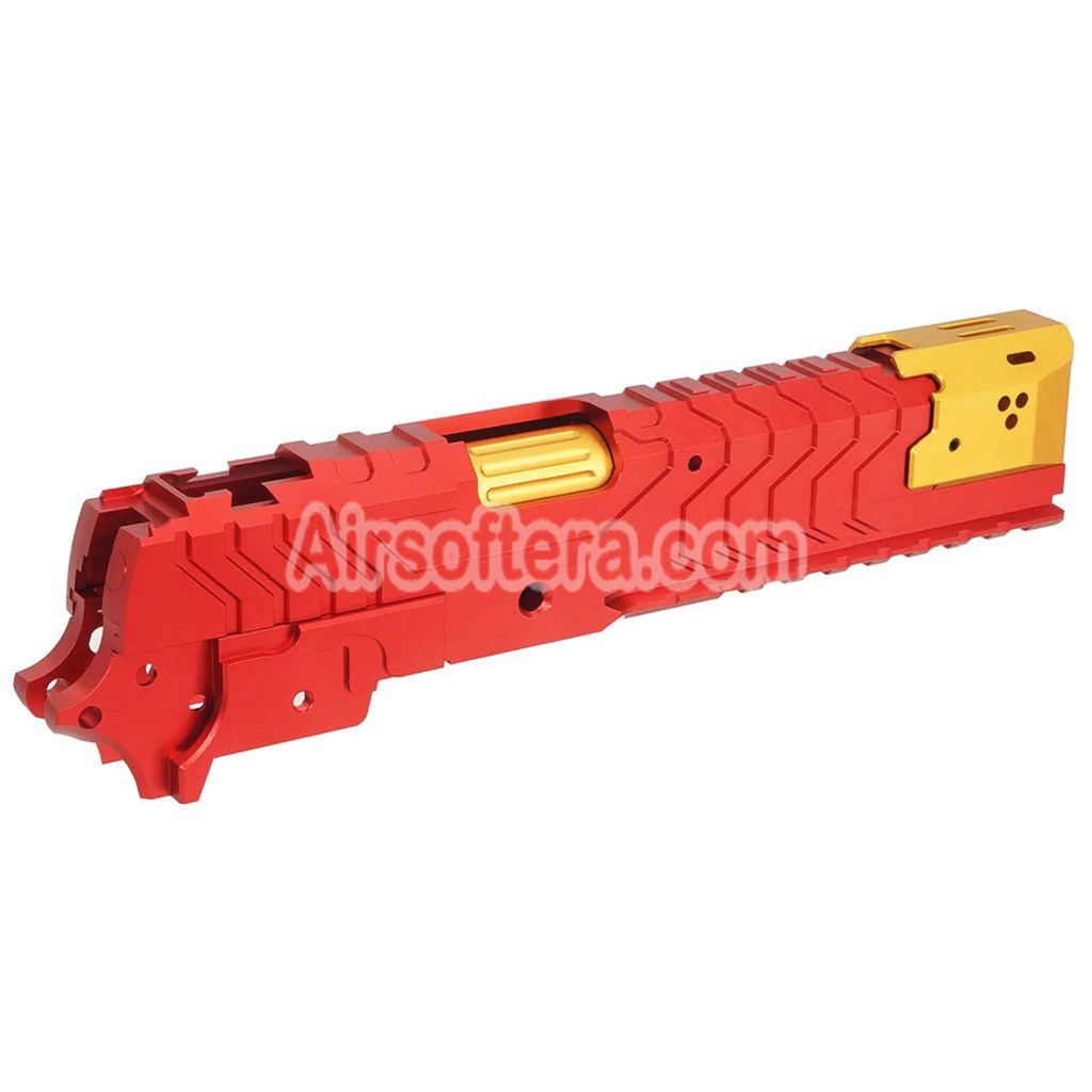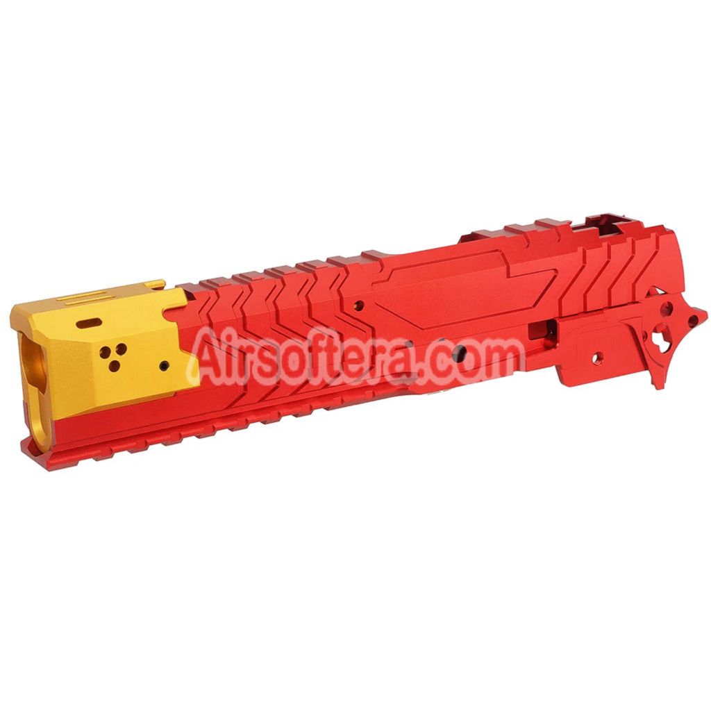 Airsoft 5KU CNC Aluminum Matrix Style Outer Barrel Middle Frame Slide Set For Tokyo Marui Hi-Capa Series GBB Pistols Red/Gold