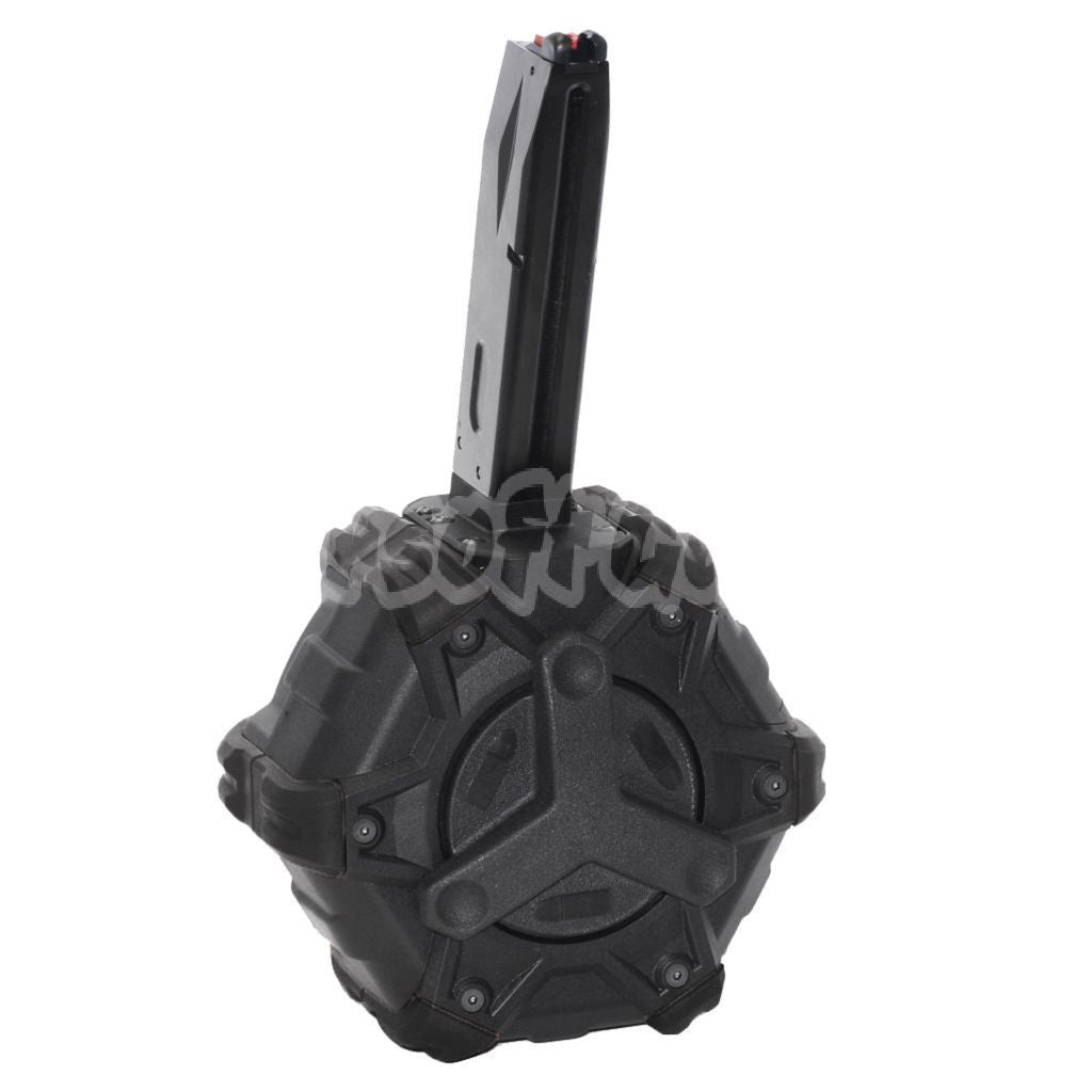 Airsoft Armorer Works AW Custom 350rd Gas Adaptive Drum Magazine for AW MB Series / KJW / WE / Tokyo Marui M9 M92 GBB Pistol Black