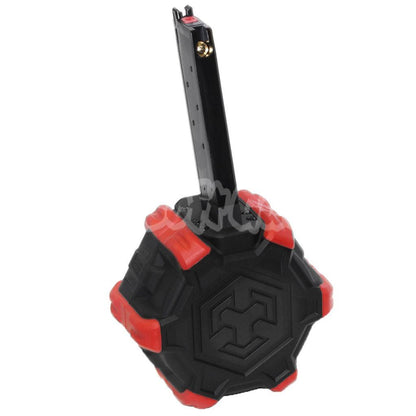 • - Armorer Works AW Custom 350rd Gas Adaptive Drum Magazine for EMG SAI Red / AW NE Series / WE Single Stack 1911 GBB Pistol.