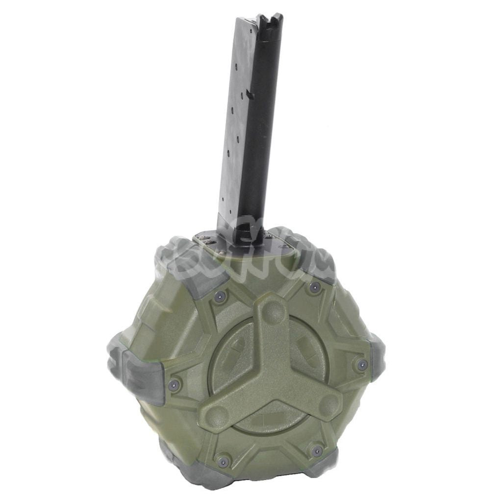 Airsoft WE 350rd Gas Drum Magazine for EMG SAI Red / AW NE Series / WE Single Stack 1911 GBB Pistol Black/OD/Grey